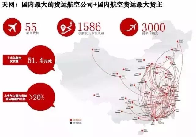 众所周知,航空是顺丰的优势之一,无论从全货机数量、航线数还是运力能力,都处于领先地位。