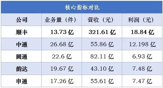 虽然营收具有绝对优势,但在净利润率方面,顺丰上半年只有18.84亿元,利润率为5.85%,低于三通一达。